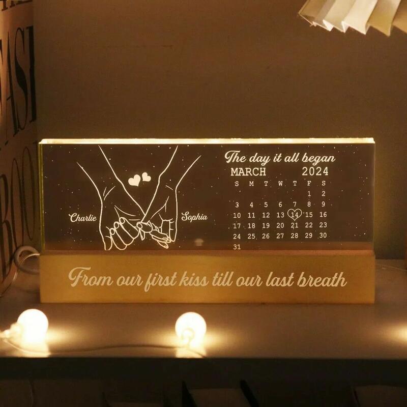 Personalisierte Led-Licht benutzerdefinierte Kalender mit Holding Hands Muster Geschenk für Paare