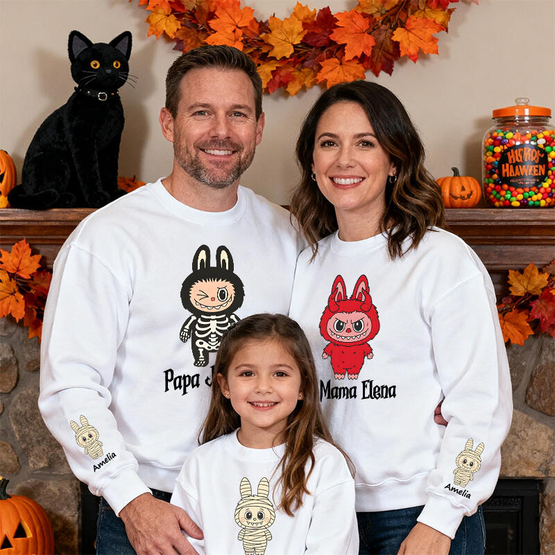 Personalisierte Eltern-Kind-Sweatshirt mit Spooky Labubu-Motiv Attraktives Halloween-Geschenk für die Familie
